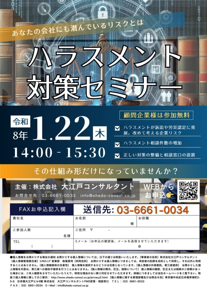 2026年1月のセミナーでは、ハラスメント対策をテーマにお届けします。